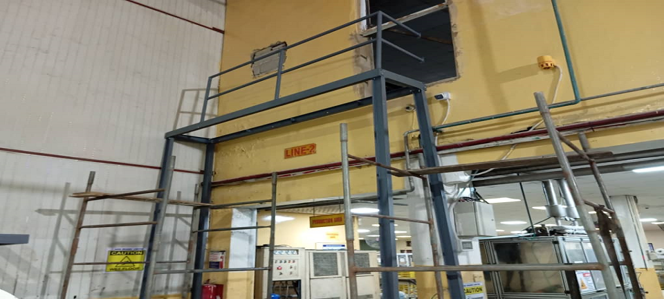 ex-ray welding (Argon and Arc welding). Fabrication of bolted and welded platform, fire hydrant installation, Installation of chillers , Air compressor , Steam boilers , elevators and all kinds of industrial machines.